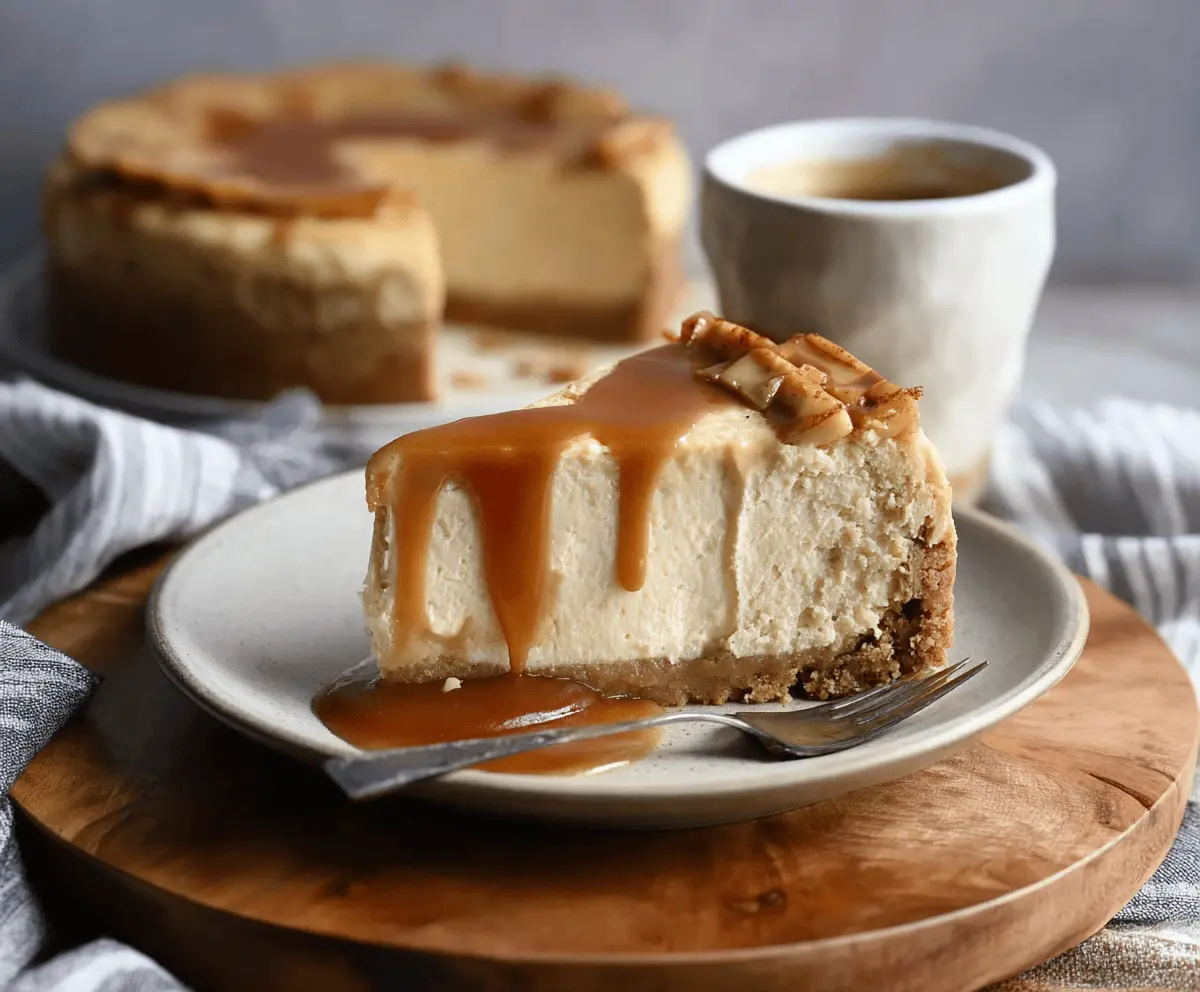 Store leftover cheesecake in an airtight container in the refrigerator for up to 4-5 days. Keep the caramel sauce separate and drizzle just before serving to preserve its texture.