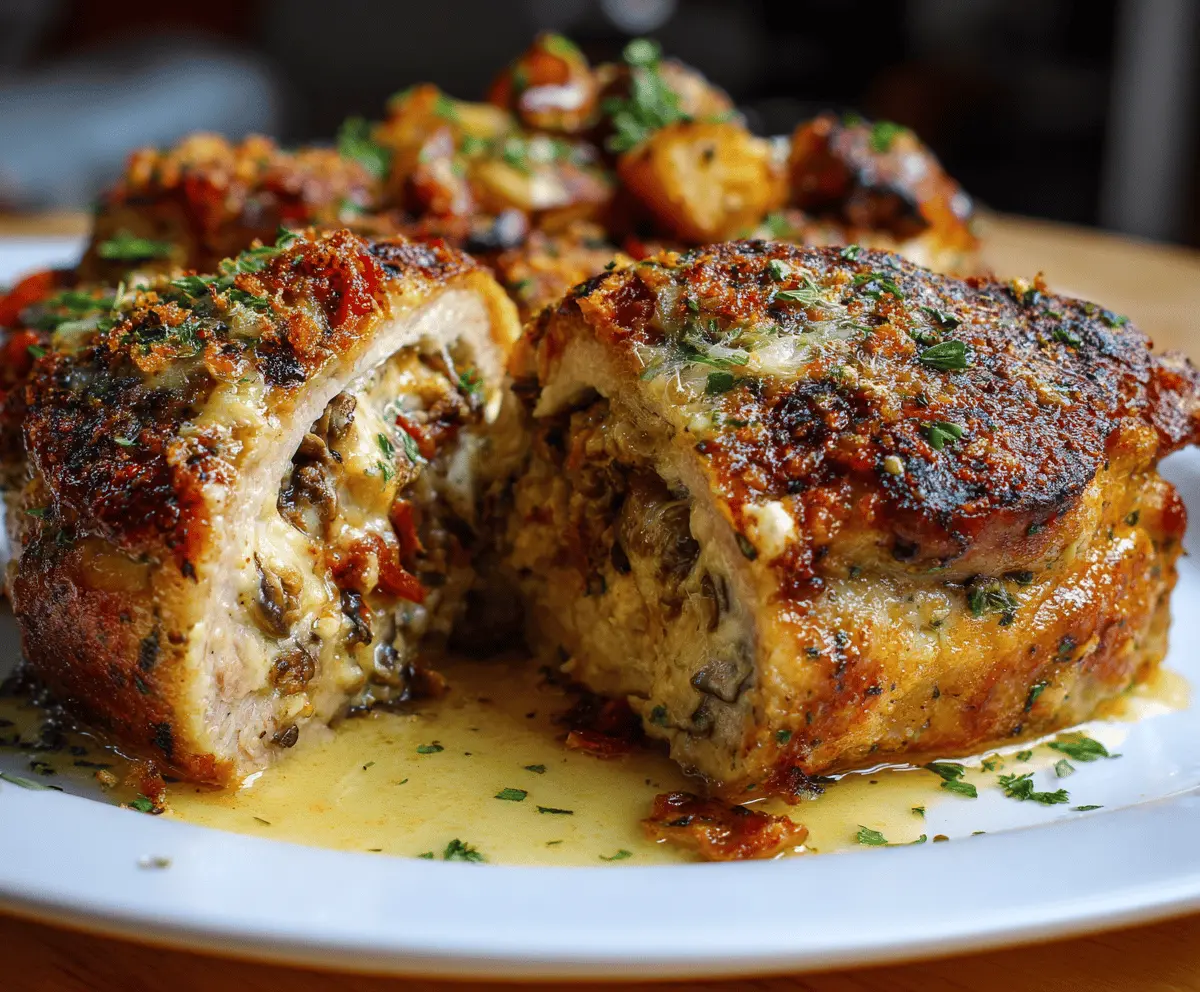 Baked Stuffed Pork Chops are a classic comfort food that feels like a special treat any night of the week. These chops are thick and juicy, filled with a savory stuffing that usually includes breadcrumbs, herbs, and sometimes cheese or veggies, giving each bite both tender meat and a flavorful surprise inside.