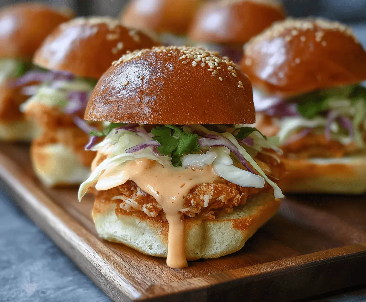 Bang Bang Chicken Sliders are little bursts of flavor wrapped in soft, fluffy buns. They’re packed with crispy chicken tossed in a creamy, spicy bang bang sauce that has just the right amount of kick. These sliders combine crunchy, saucy, and tender textures, making every bite exciting and satisfying.