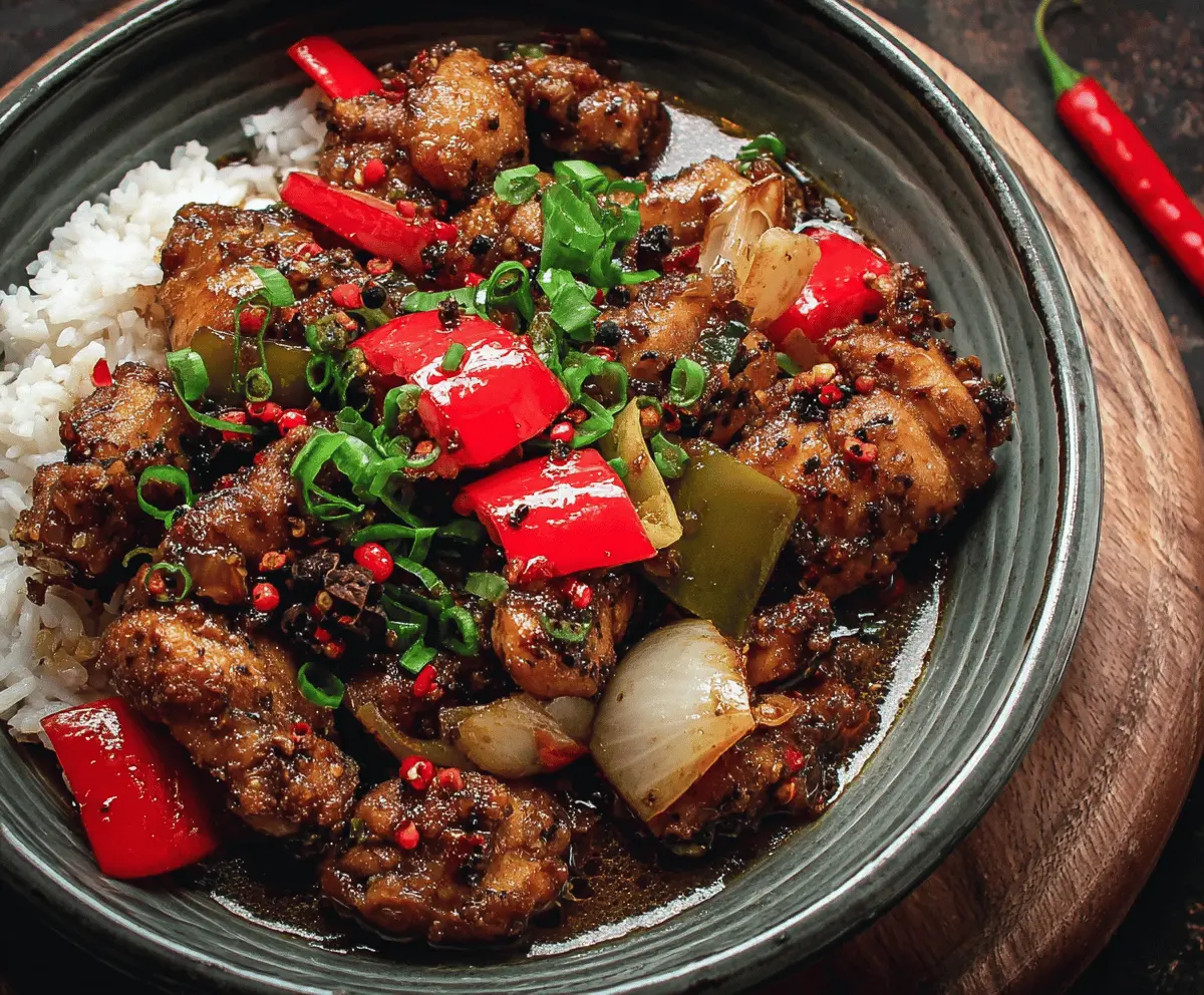 Black Pepper Chicken is a simple, tasty dish that packs a punch with its bold, peppery flavor. Tender pieces of chicken are cooked with plenty of cracked black pepper, giving it just the right amount of spice and warmth. It’s a perfect mix of juicy chicken and a little heat that hits your taste buds in the best way.