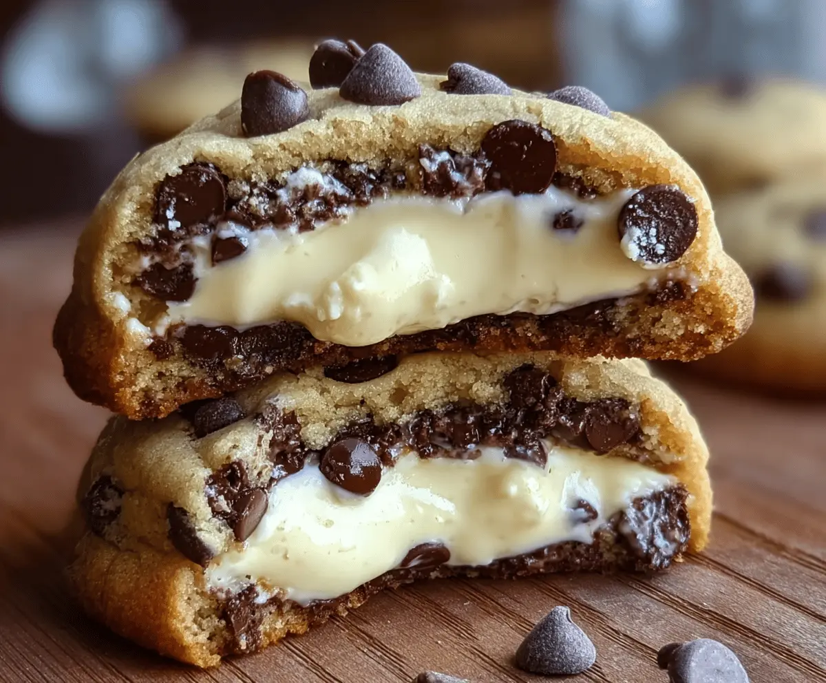 Chocolate Chip Cookies with Creamy Cheesecake Filling bring together two classic treats in one fun and tasty dessert. Imagine soft, chewy chocolate chip cookies hugging a smooth, tangy cheesecake filling that melts in your mouth with every bite. The mix of chocolate, sweet cookie dough, and rich cheesecake makes this a real crowd-pleaser.