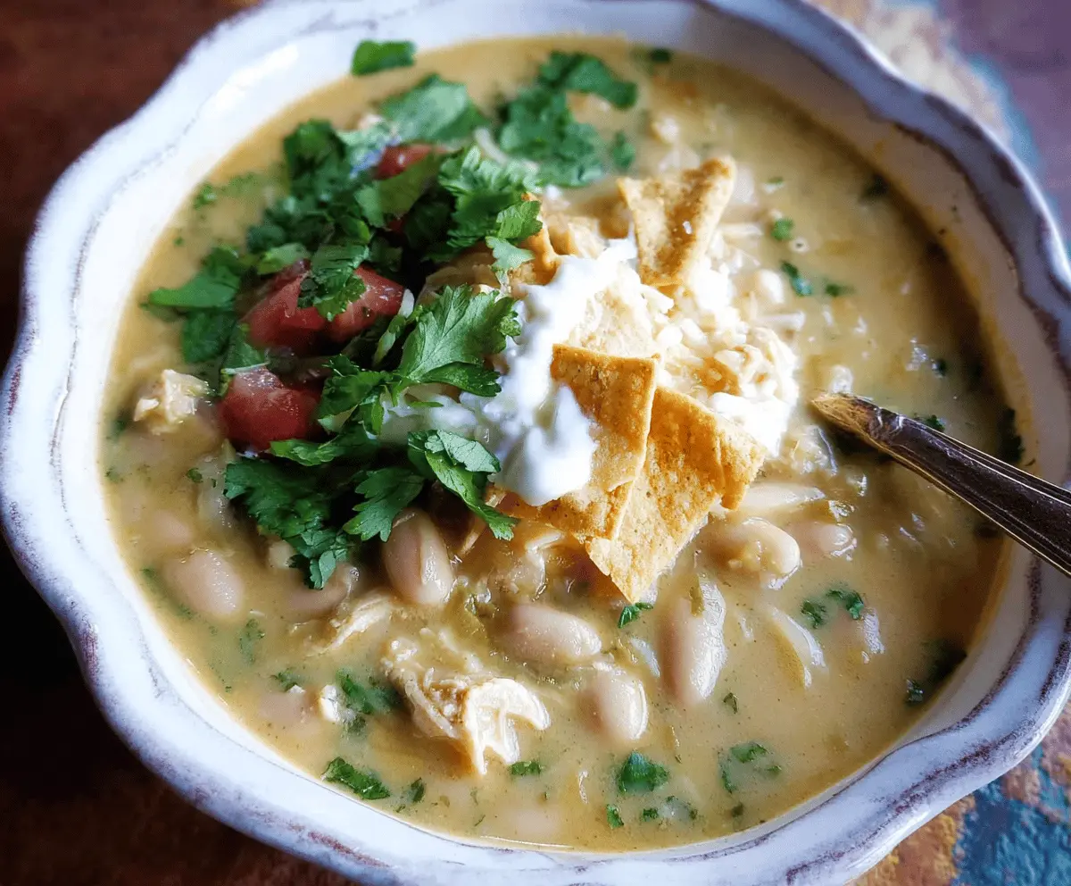 - Use an immersion blender to gently puree half the soup in the pot, leaving some beans and chicken whole for texture.