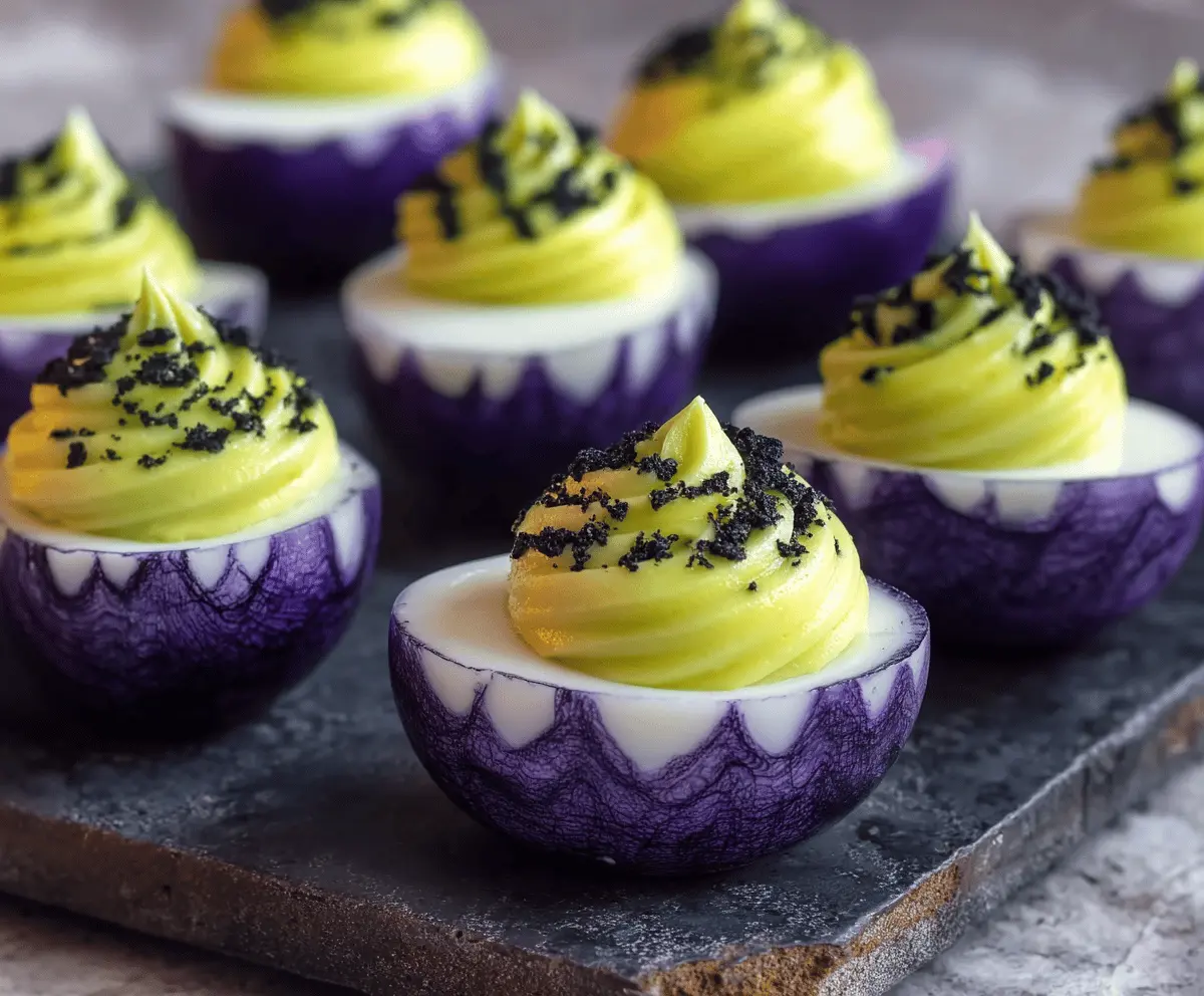 Creepy Deviled Eggs are a fun and spooky twist on the classic party snack! These little bites are creamy deviled eggs with a spooky flair—think olives turned into little eyeballs or slices of red pepper that make them look like creepy creatures.