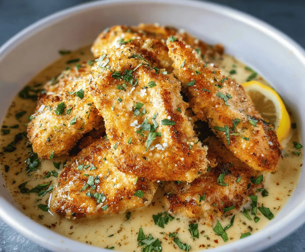Crispy Parmesan Chicken is a simple, crunchy, and flavorful dish that brings together a golden, crispy coating with the rich taste of Parmesan cheese. The outside is perfectly crisp, while the chicken inside stays juicy and tender. This recipe is all about that satisfying crunch paired with cheesy goodness.
