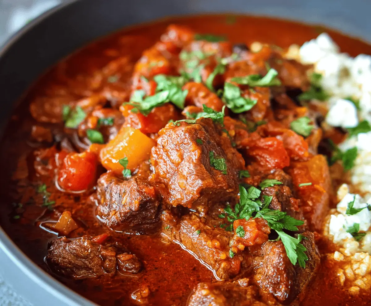 Greek Style Beef Stew in a Tomato Sauce is a heartwarming dish full of tender beef simmered slowly in a rich tomato sauce with hints of classic Greek flavors like oregano, garlic, and a touch of cinnamon. The sauce thickens beautifully, wrapping the beef in a cozy, flavorful hug that’s perfect for any day you need something comforting.