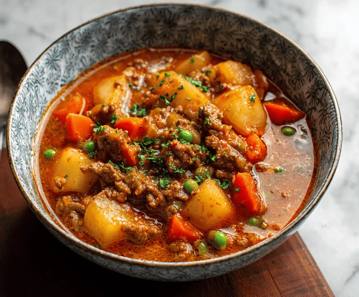 Hamburger Stew is a hearty, comforting dish that brings together ground beef, potatoes, carrots, and onions in a thick, flavorful broth. It’s the kind of meal that feels like a warm hug on chilly days, with tender veggies and savory meat all simmered into one cozy pot.