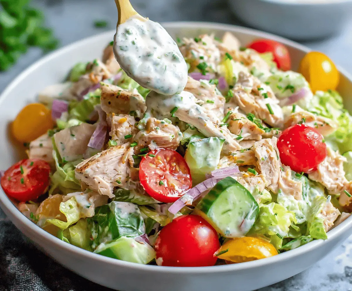 I love making this salad when I want something that’s both filling and easy to put together. Using Greek yogurt in the ranch dressing gives it a nice tang without adding too much fat, and I like to toss in some chopped celery and green onions for extra freshness and texture. It’s one of those dishes that you can whip up quickly, which always makes me happy on busy days.