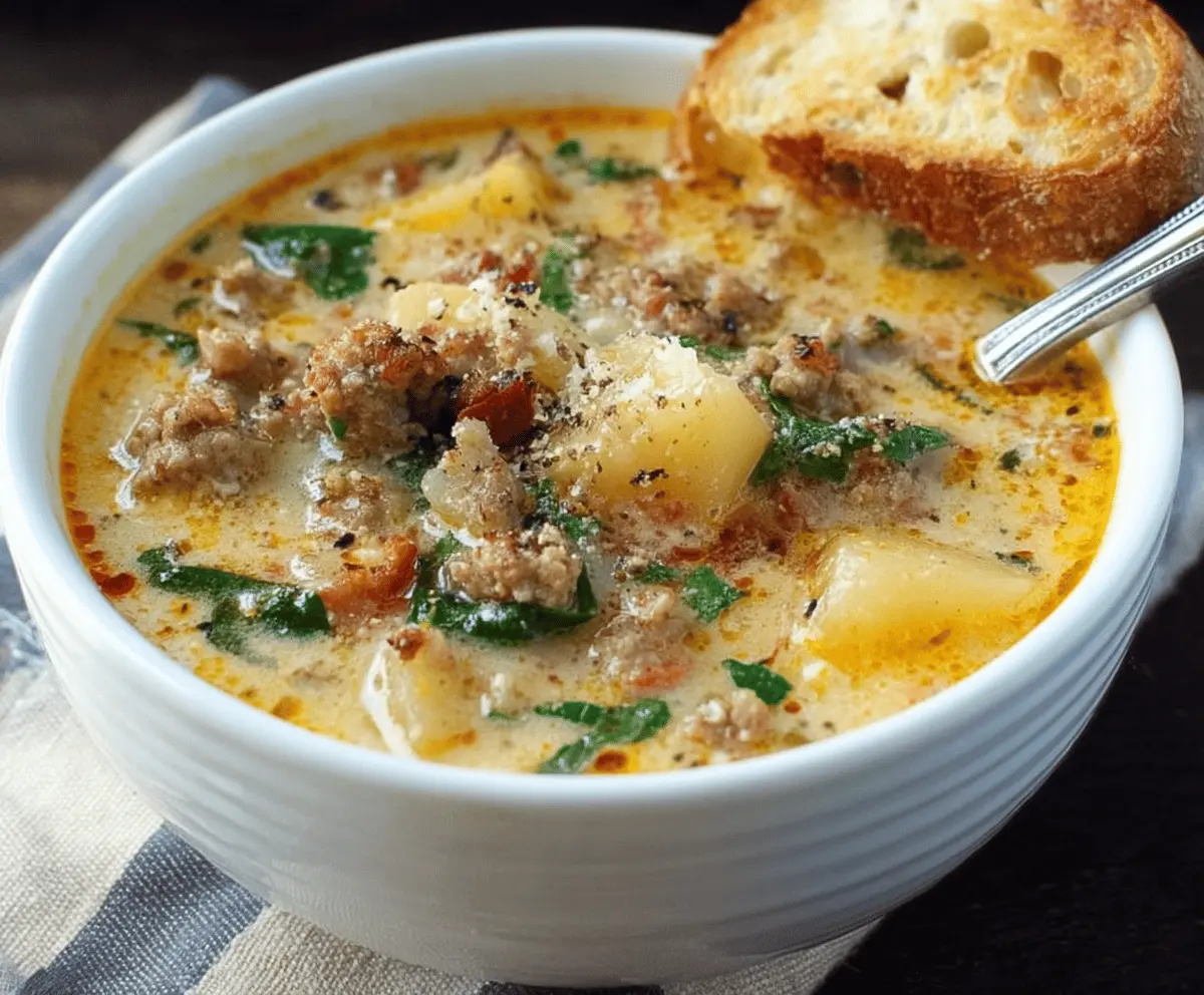 Italian Sausage and Potato Soup is a hearty and comforting dish that brings together flavorful Italian sausage, tender potatoes, and a rich broth. The combination of spicy sausage and creamy potatoes gives the soup a wonderful texture and taste that feels like a warm hug on a chilly day.