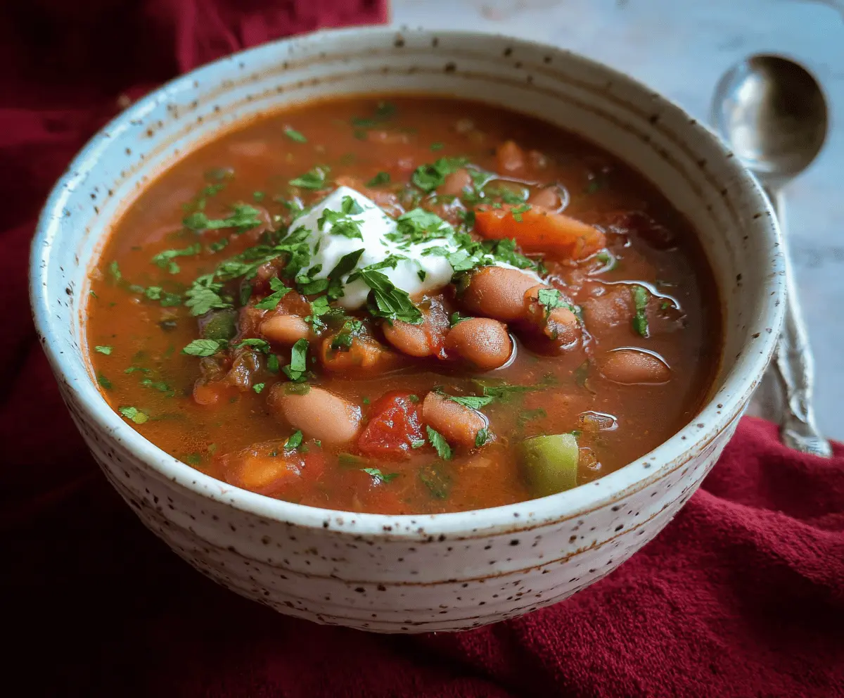 Mexican Pinto Bean Soup is a hearty and comforting bowl loaded with tender pinto beans, smoky spices, and a touch of tangy lime. It’s the kind of soup that fills the kitchen with wonderful scents of cumin, garlic, and fresh cilantro, reminding you of cozy family dinners or casual get-togethers with friends. The beans break down just enough to make the broth rich and smooth, while still giving you that satisfying bite.