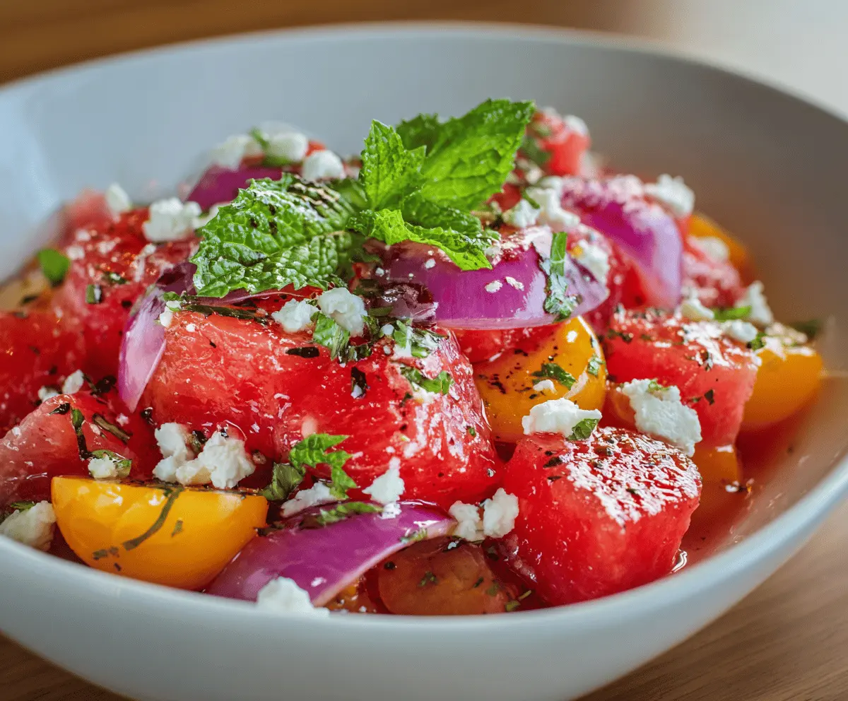 - Basil Watermelon Salad: Replace mint with basil for a more savory, aromatic twist.