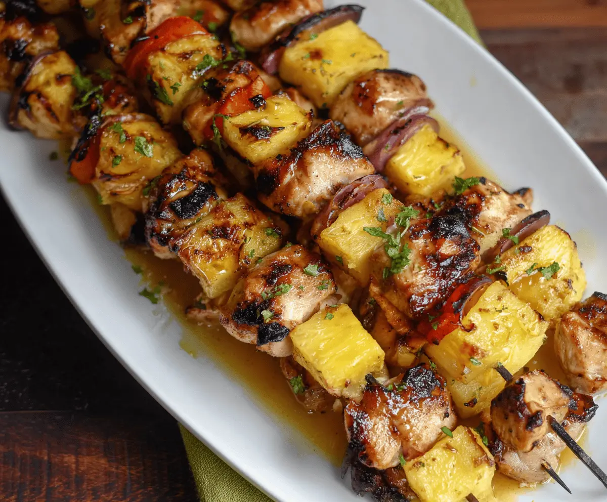 Pineapple Chicken Kabobs are a fun and tasty way to enjoy a mix of sweet and savory flavors all on a stick! Juicy chicken pieces grilled alongside chunks of fresh pineapple, bell peppers, and onions create a colorful and vibrant meal that’s perfect for warm days. The pineapple adds a nice zing that balances out the savory chicken in every bite.