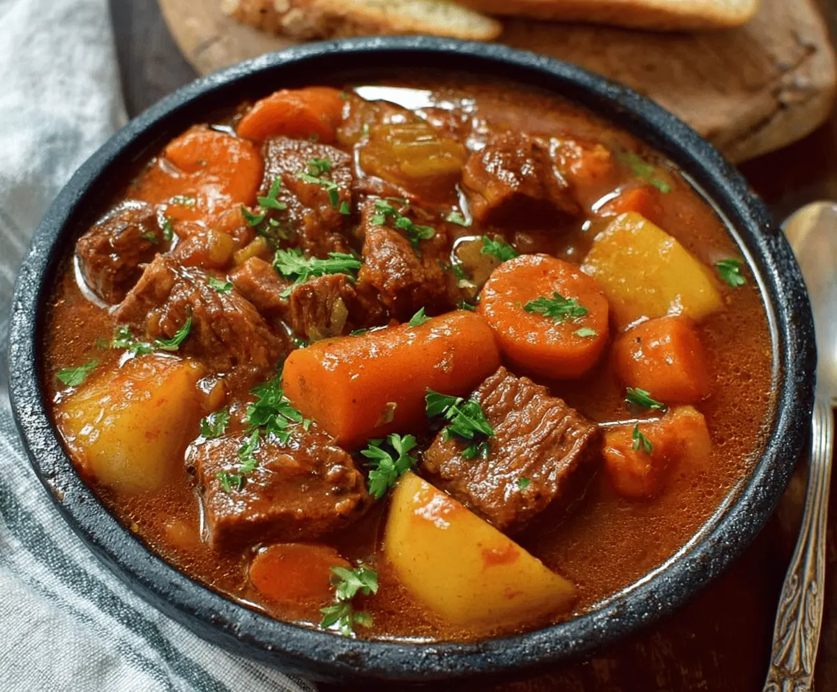 Patience is key: cooking low and slow lets the beef break down and vegetables soften perfectly. It’s what makes this stew so hearty and delicious every time.