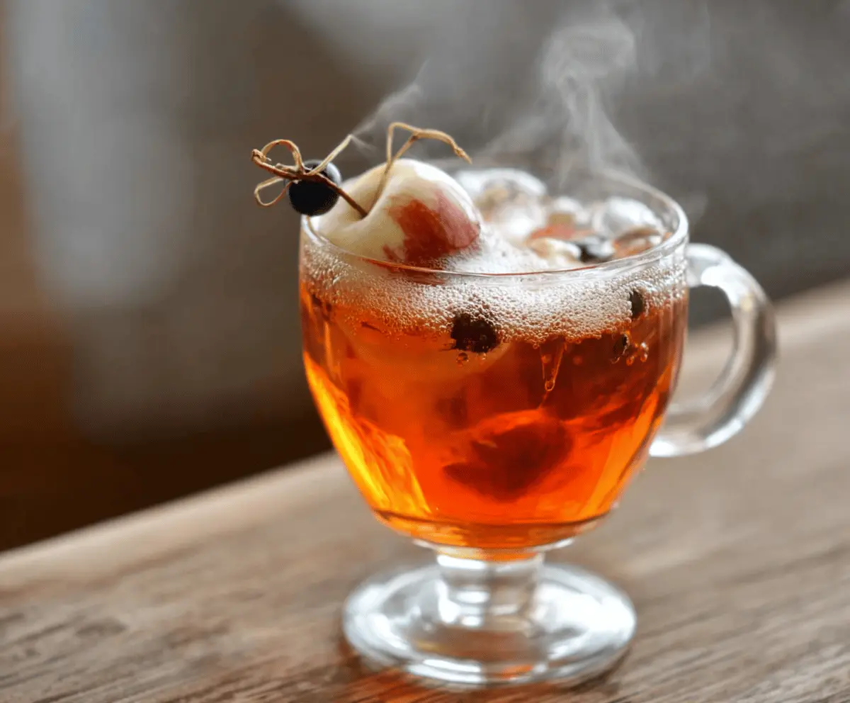 - Garnishes like cinnamon sticks, apple slices, or cranberries – to make it look extra festive.