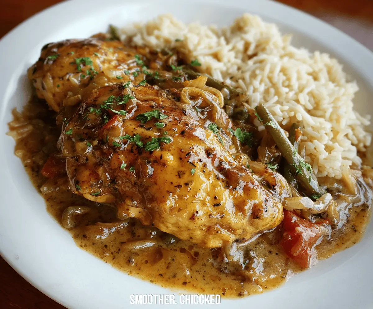 Smothered Chicken and Rice is a comforting, hearty dish that brings together tender chicken pieces nestled in fluffy rice, all covered with a rich and flavorful gravy. It’s the kind of meal that feels like a warm hug on a plate, with the chicken juicy and the rice soaking up all those delicious juices.