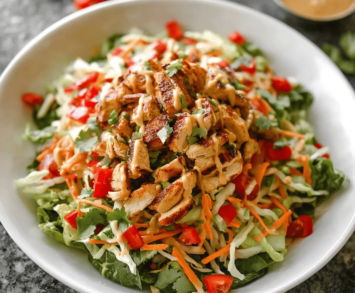 Thai Chicken Salad with Peanut Dressing is a refreshing mix of tender chicken, crunchy veggies, and a creamy, nutty sauce that ties it all together perfectly. Crisp lettuce, shredded carrots, and fresh herbs add a bright crunch that balances out the richness of the peanut dressing. It feels light but still satisfying thanks to all the different textures and flavors.