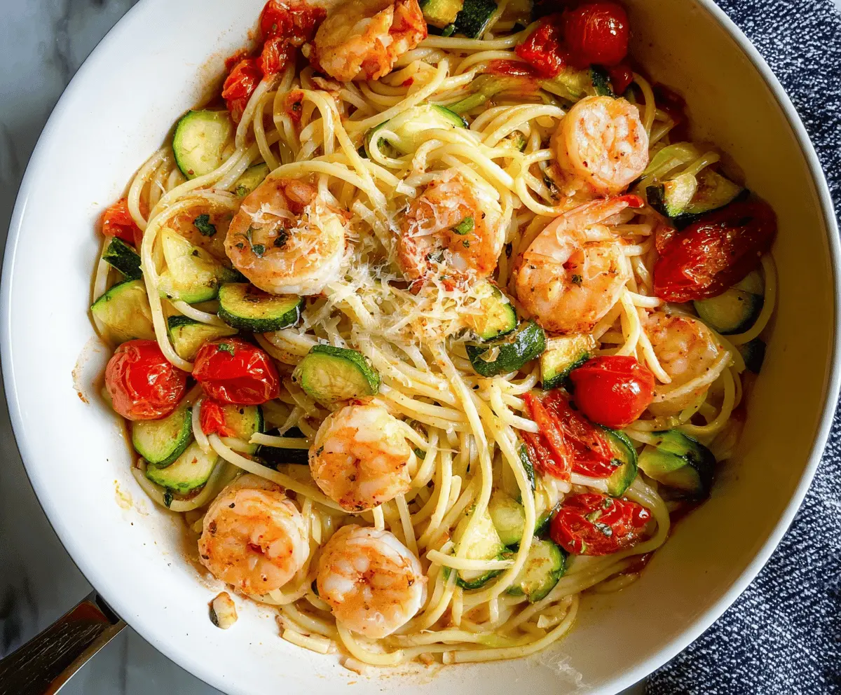 Tomato Zucchini Shrimp Pasta is a bright and fresh dish that’s perfect for a quick weeknight dinner. Tender shrimp, juicy tomatoes, and tender zucchini come together with pasta in a light, flavorful sauce that feels like a little taste of summer in every bite.