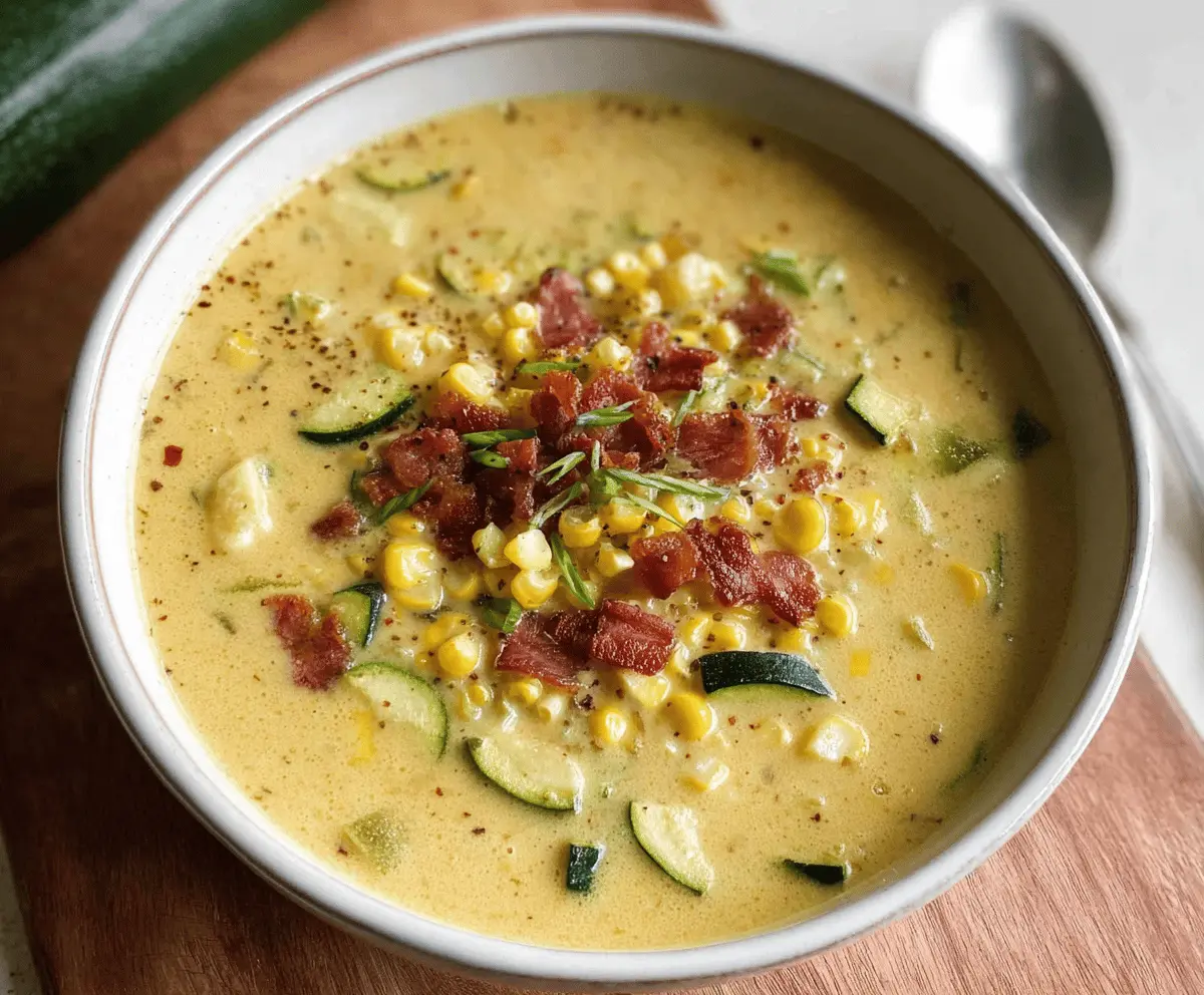 Zucchini Corn Chowder is a delightful mix of tender zucchini and sweet corn, all cooked up into a creamy, comforting soup. It’s got a nice balance of fresh veggies and a smooth, rich texture that feels like a warm hug in a bowl. The flavors are simple and fresh, making it perfect for any time you want something cozy but light.